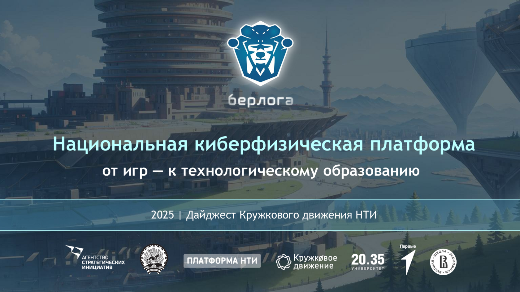 Национальная киберфизическая платформа (НКФП) «Берлога» – всероссийский проект по массовому вовлечению школьников в сферу технологий и технологическое образование через полезные мобильные и видеоигры. Платформа помогает познакомить школьников с направлениями развития технологического суверенитета России, привлечь в кружки и инженерные соревнования для более глубокого изучения робототехники, искусственного интеллекта, беспилотников и других приоритетных направлений и в дальнейшем – на профильные направления вузов. Количество пользователей игр НКФП «Берлога» с 2023 года превысило 640 000 человек.