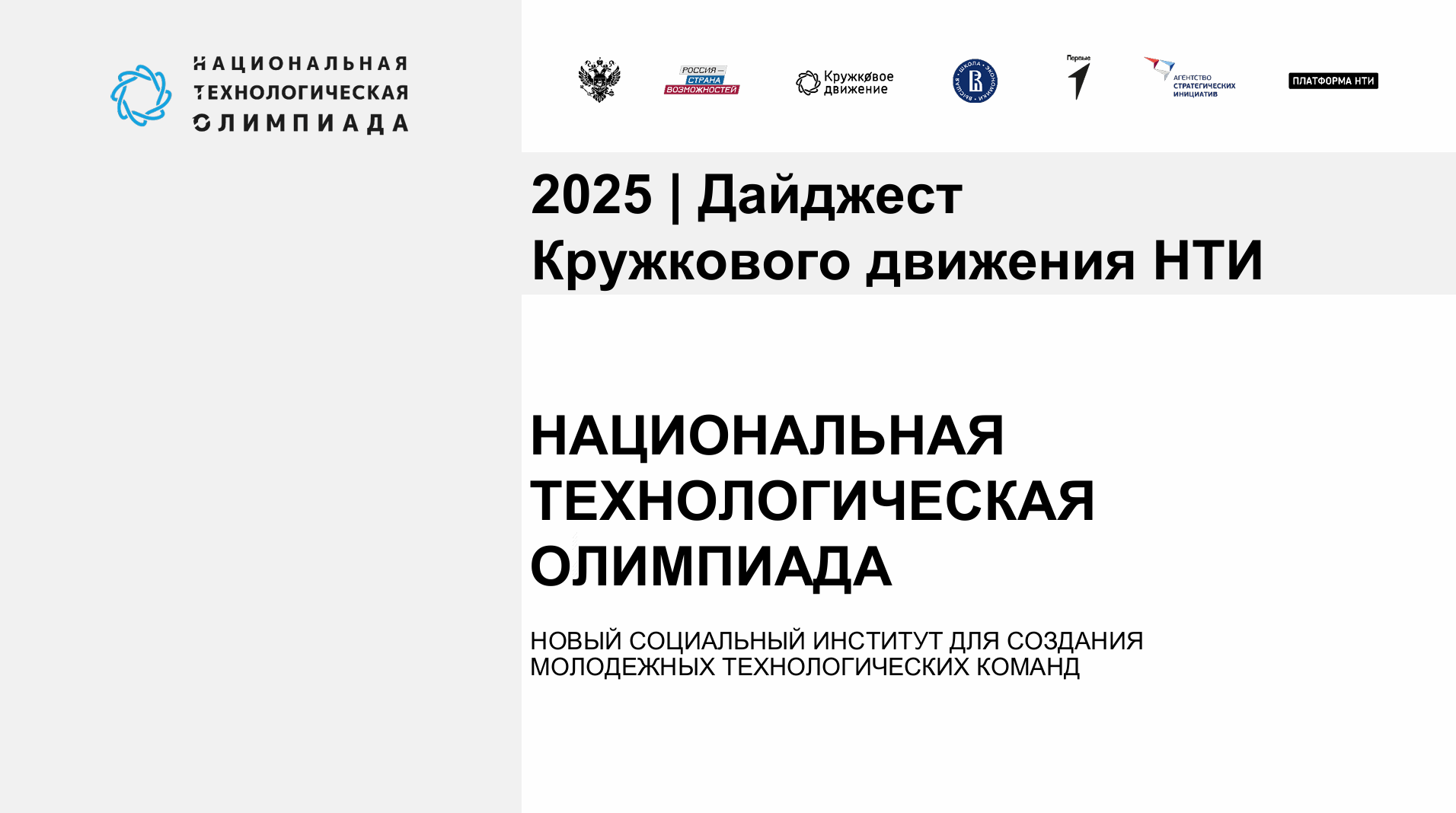 Дайджест Кружкового движения НТИ посвящен XI сезону Национальной технологической олимпиады — первых и самых масштабных в России командных инженерных соревнований для школьников и студентов. Ежегодно олимпиада собирает сотни тысяч молодых людей, предлагая более 40 актуальных технологических направлений. Каждый может выбрать профиль по интересам и попробовать свои силы в решении реальных задач.