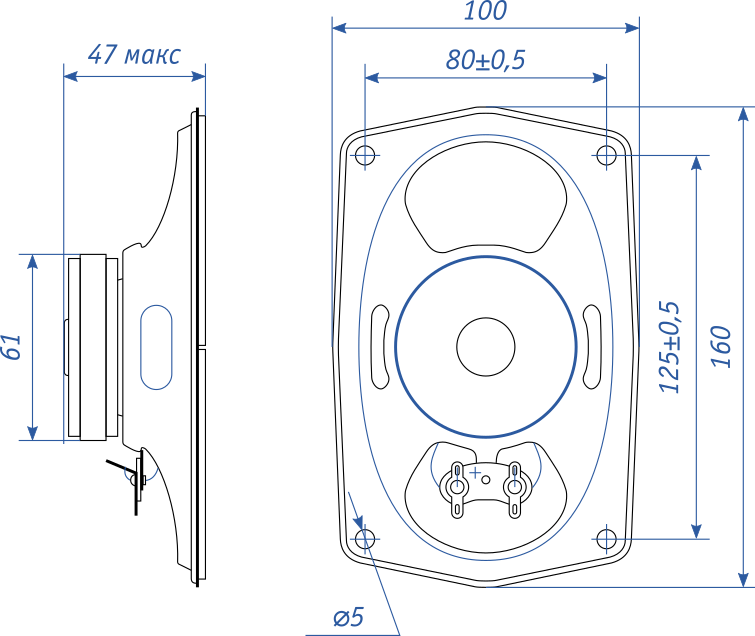• конечно же, динамики. По форме и размерам крайне удачно для шарманки подходят отечественные ЗГДШ-2 (см. рис.). Но можно применять любые подходящие. Важно следить, чтобы сопротивление и мощность динамиков подходили под характеристики усилителя, но в целом — главное следить, чтобы реальная выходная мощность звука не превышала возможности оборудования сильно, ограничивая громкость.